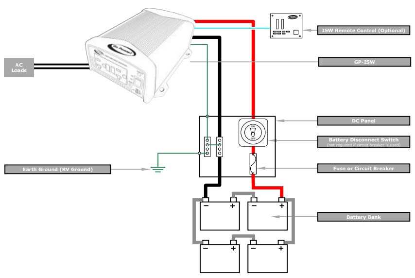 Rysunek 3. Kompletny schemat okablowania i uziemienia po stronie prądu stałego falownika (PE/uziemienie)
