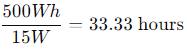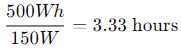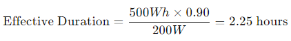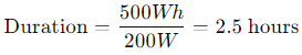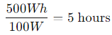 Na przykład, jeśli masz elektrownię o mocy 200 W i jej mocy znamionowej 500 Wh: