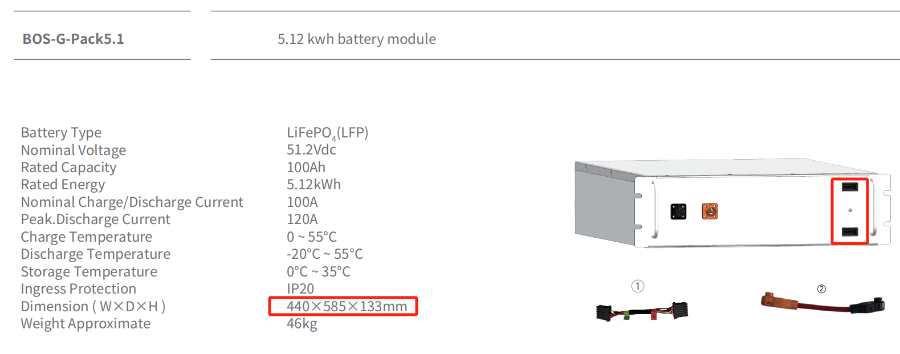 BOS-GM5.1 (poprzedni akumulator): 440 × 570 ×133 mm